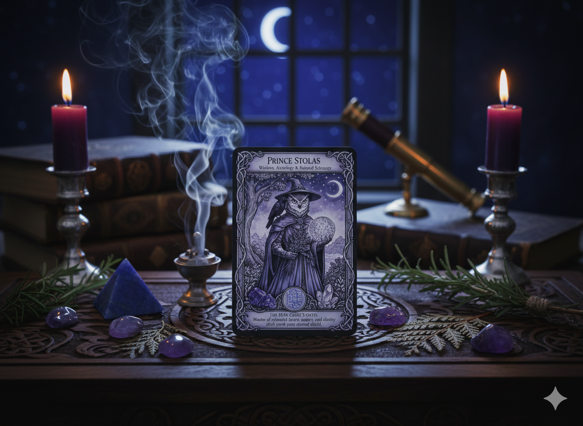 ​Stolas verschijnt niet als een figuur van chaos, maar als een hooggerelateerde prins die heerst over 26 legioenen van geesten. Hij wordt beschreven als een geduldige, vriendelijke en benaderbare leraar, ideaal voor diegenen die hun eerste stappen zetten op het pad van diepere spirituele studie. Vandaag is de dag om de 'leerling' in onszelf te omarmen.
