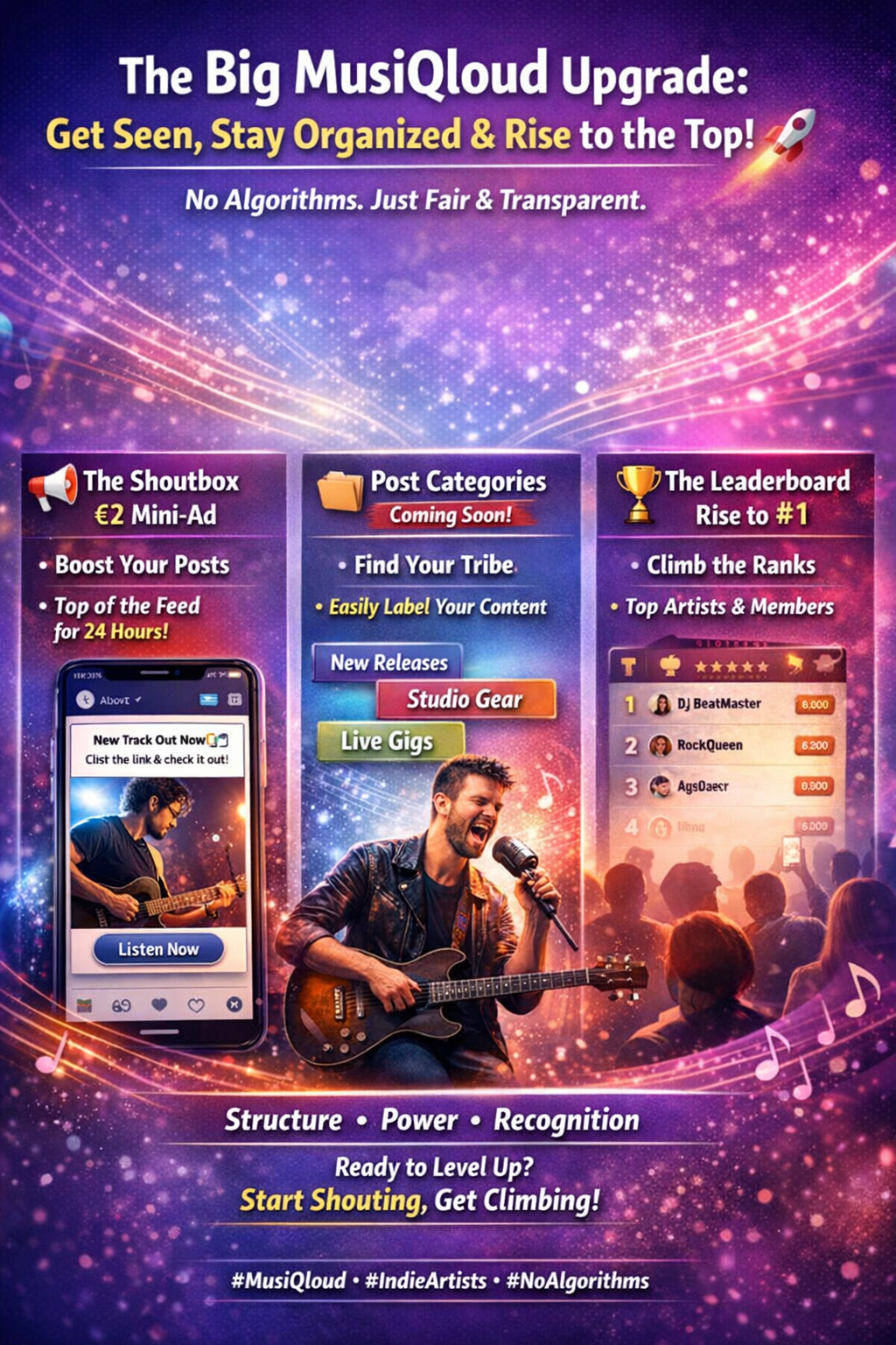 🎶 #MusiQloud #MusicCommunity #IndieArtists #MusicPromotion #NewMusic #ContentCreators #DigitalMarketing #ArtistLife #MusicPlatform #StartupLife #GrowYourAudience #SupportArtists #NoAlgorithms #FairPlatform