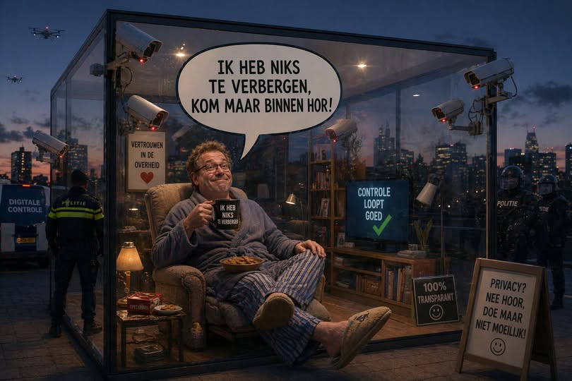Daar zijn ze weer, de kampioenen van de onverschilligheid. De mensen die, terwijl de overheid met een digitale koevoet hun voordeur forceert, nog vragen of de meneer van de controle misschien een kopje koffie met een speculaasje wil.