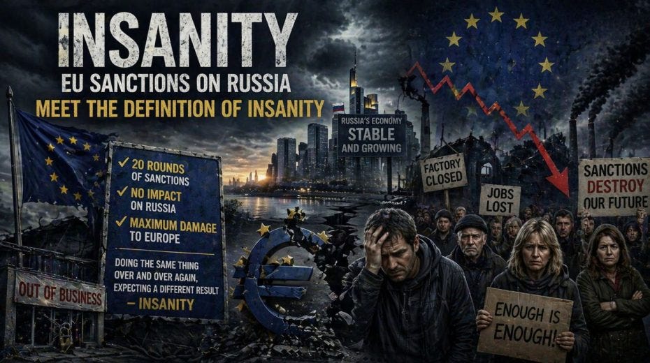 INDIGNATIENEWSLETTER.SUBSTACK.COMEconomische sancties van de EU versterken NAVO-oorlogsplan tegen RuslandOp criminele wijze creëren de NAVO-agressors een situatie waarin Rusland in een kookpot belandt.0 Comments 0 Shares 1 Views -