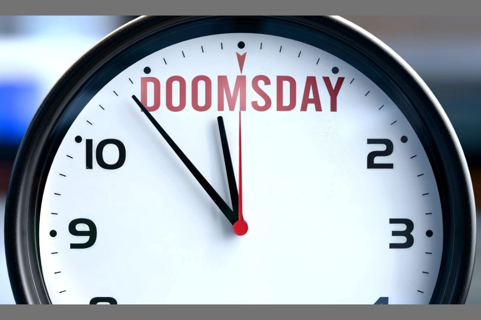 Het is dan ook niet verwonderlijk dat de Doomsday Clock nog nooit zo’n korte tijd tot middernacht voor de mensheid heeft aangegeven: slechts 85 seconden. https://indignatienewsletter.substack.com/p/singulariteit-en-de-doomsday-clockSingulariteit en de Doomsday Clock Het is dan ook niet verwonderlijk dat de Doomsday Clock nog nooit zo’n korte tijd tot middernacht voor de mensheid heeft aangegeven: slechts 85 seconden. https://indignatienewsletter.substack.com/p/singulariteit-en-de-doomsday-clock