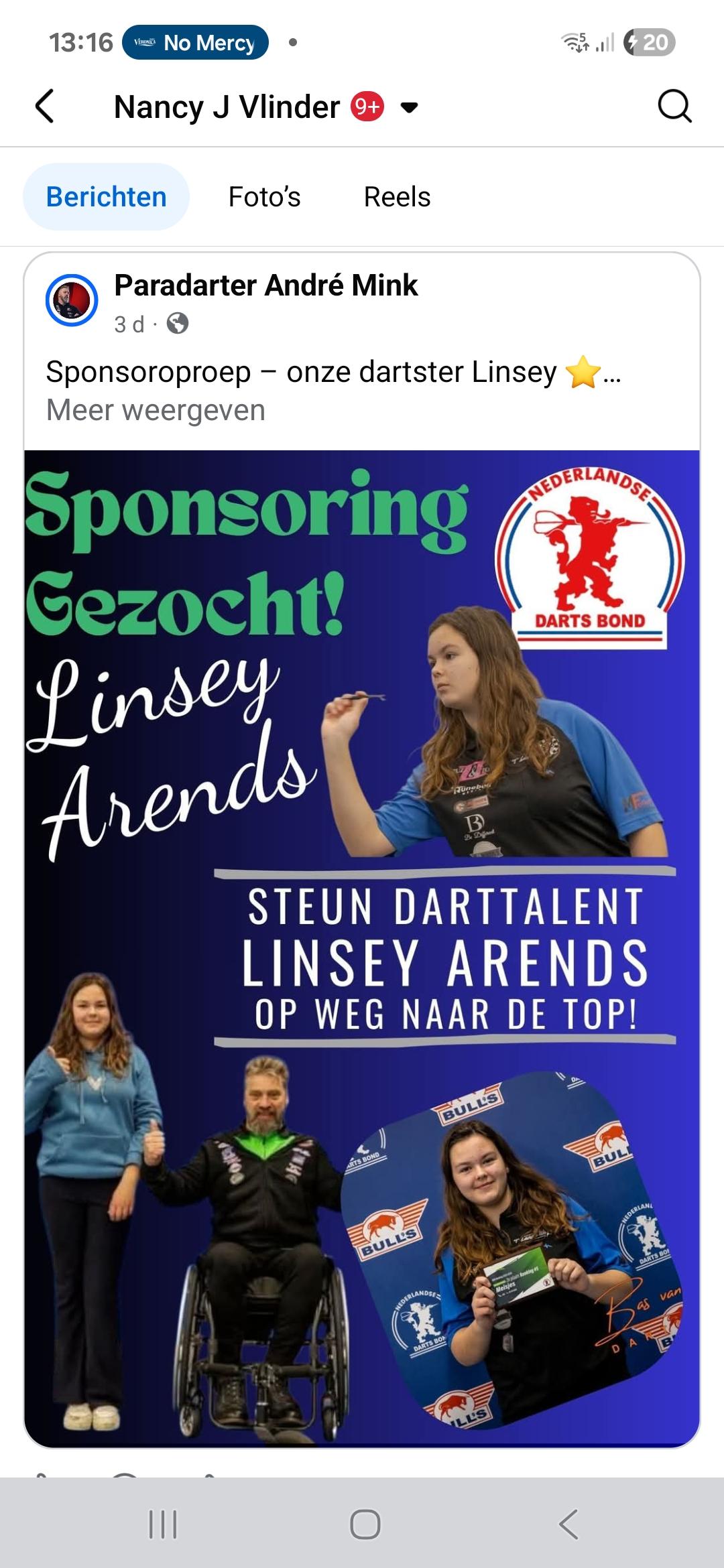 Sponsoroproep – onze dartster Linsey ⭐